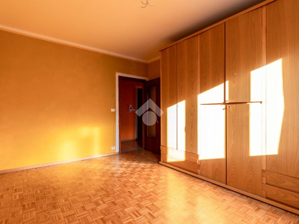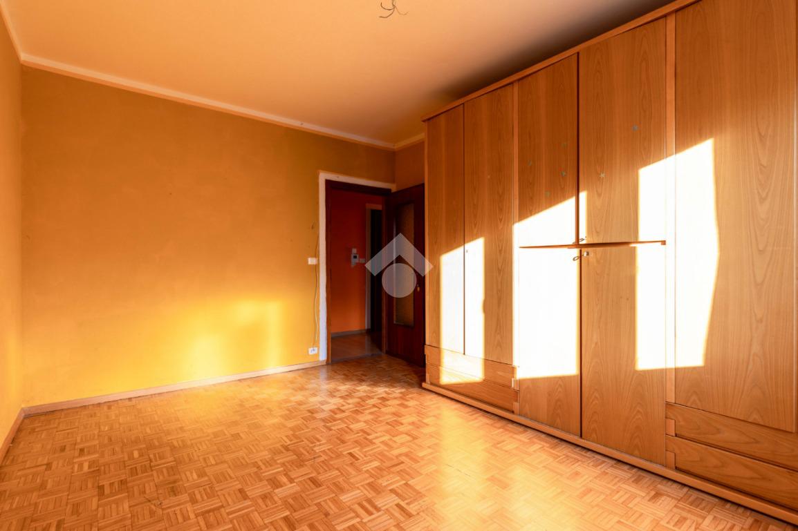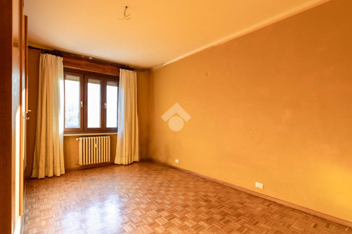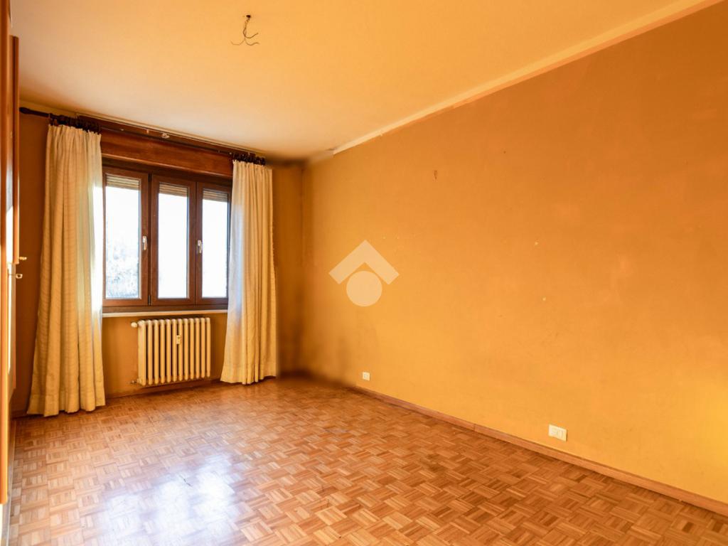 La camera da letto, di generose dimensioni, è pavimentata in parquet.