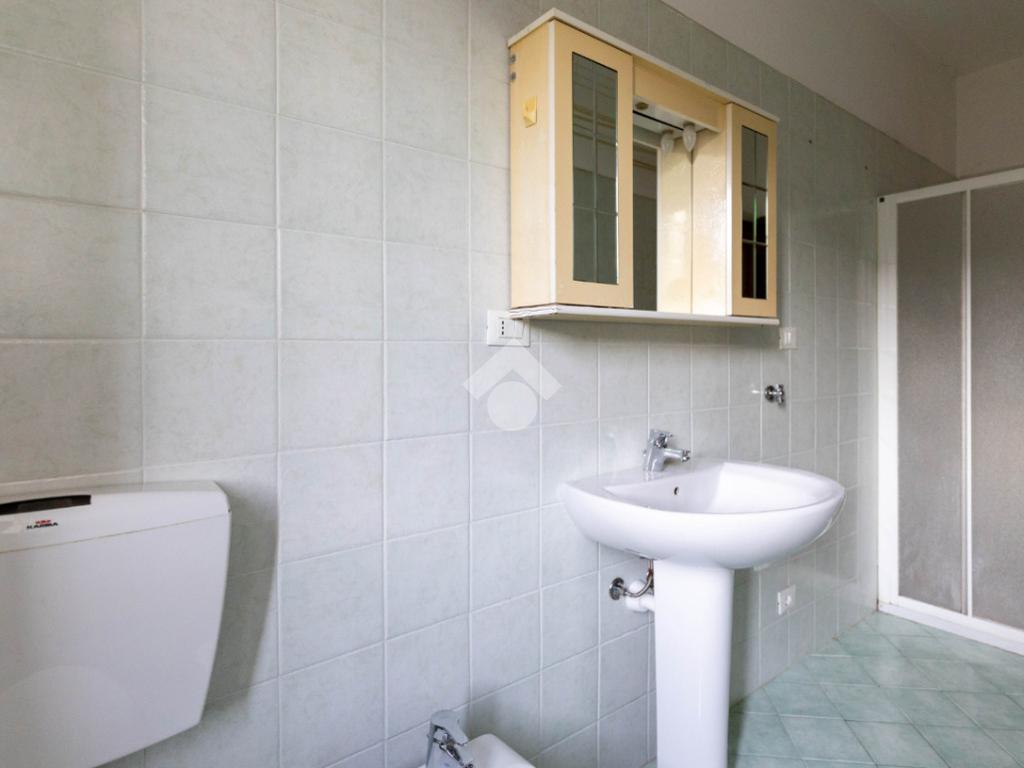 Il bagno finestrato è completo di box doccia.