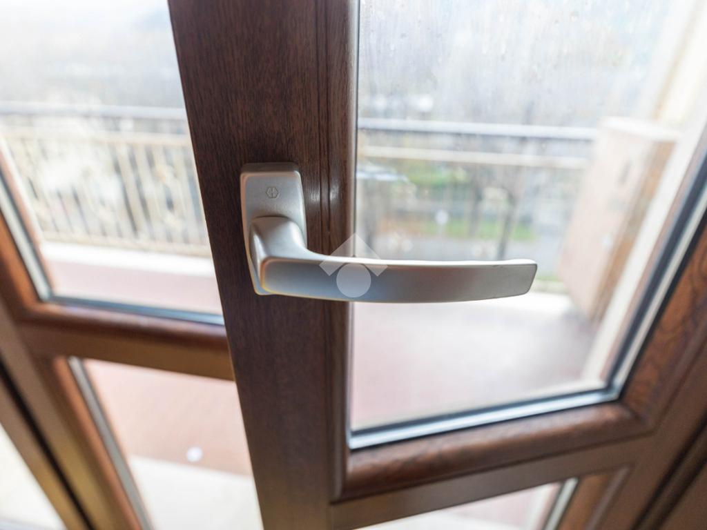 Gli infissi di recente installazione sono in PVC con doppi vetri, garantendo un buon isolamento termico e acustico.
