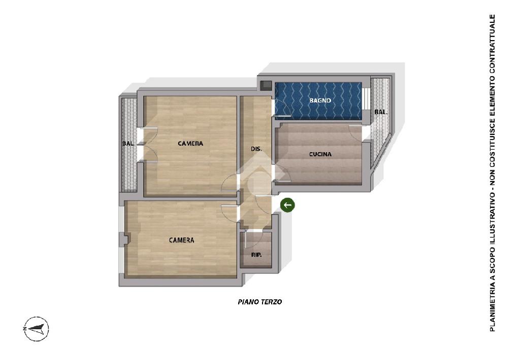 L’appartamento si trova al terzo ed ultimo piano di una palazzina priva di ascensore ed è caratterizzato da una distribuzione interna funzionale e ben sfruttata.