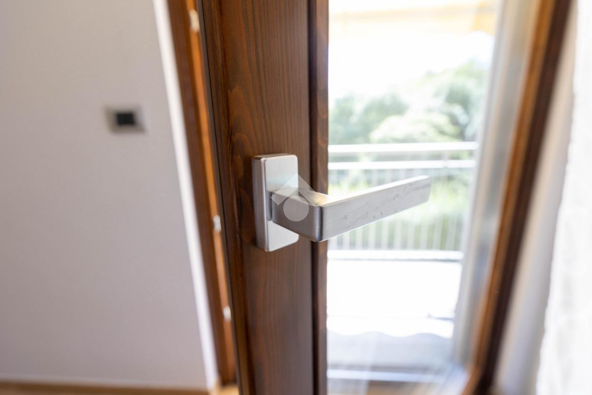 I serramenti sono in legno con triplo vetro e zanzariere.
