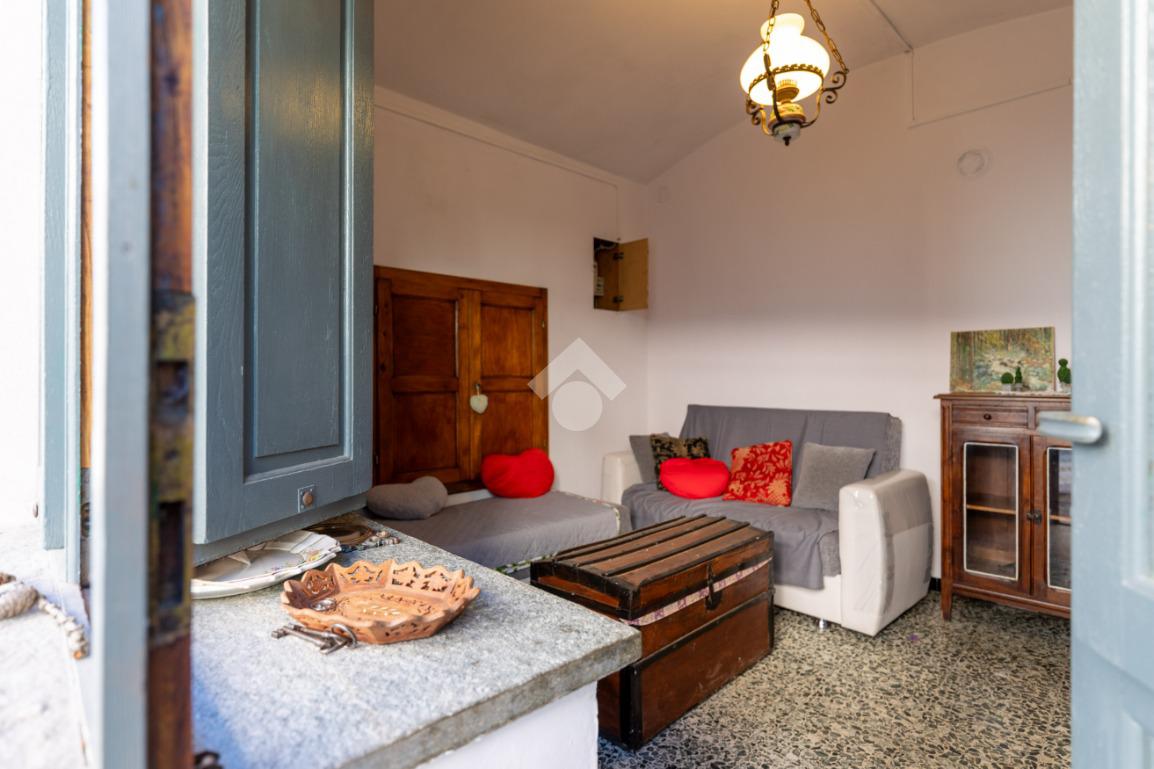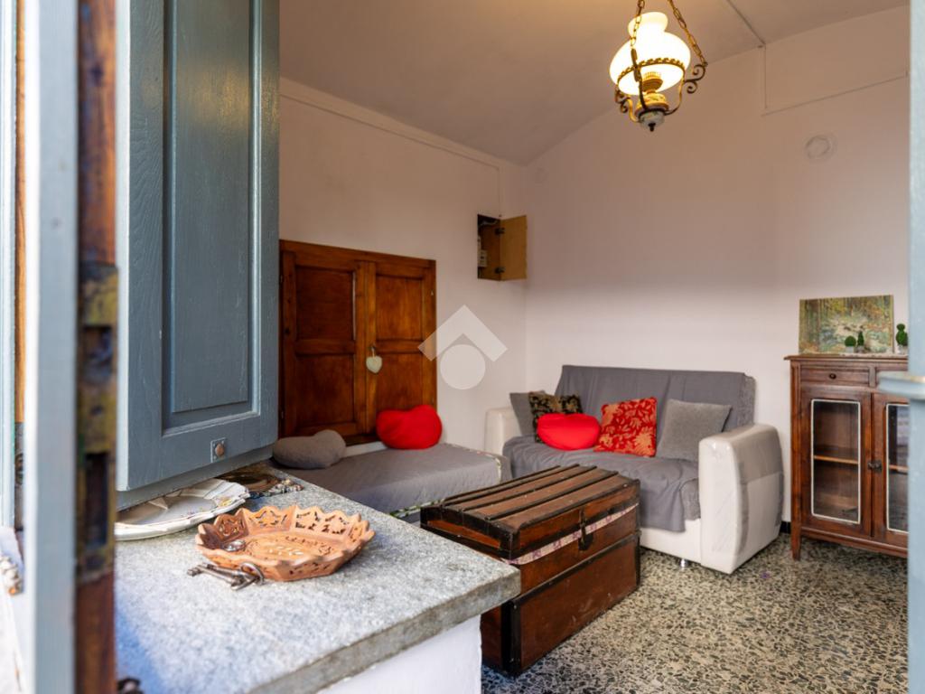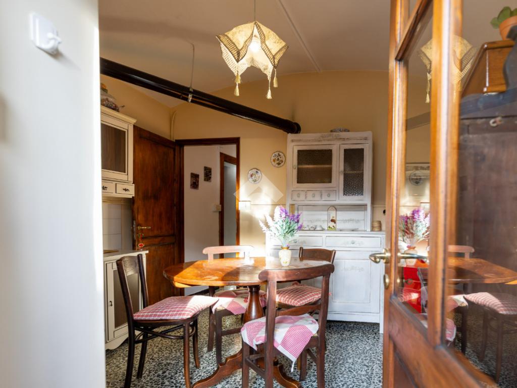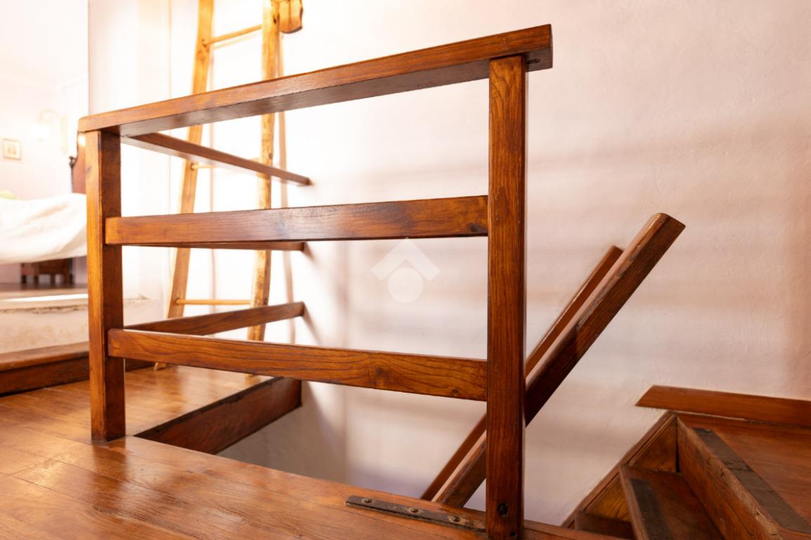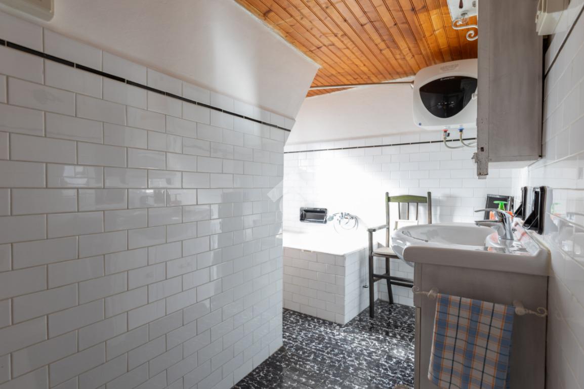 L’abitazione è disposta su tre livelli, di cui due abitativi, con ingresso principale a livello strada e privo di gradini, dettaglio pratico e raro nelle case di questo tipo. Al piano terreno si viene accolti da un grazioso salottino, intimo e conviviale, che introduce alla cucina, vero cuore della casa. Qui il tempo sembra rallentare: l’ambiente sprigiona un fascino chabby chic, fatto di arredi chiari, dettagli curati e luce naturale, con la stufa a legna a scandire le stagioni e l’affaccio sul balcone a regalare aria e luminosità. Il piano si completa con un bagno finestrato, semplice e funzionale.