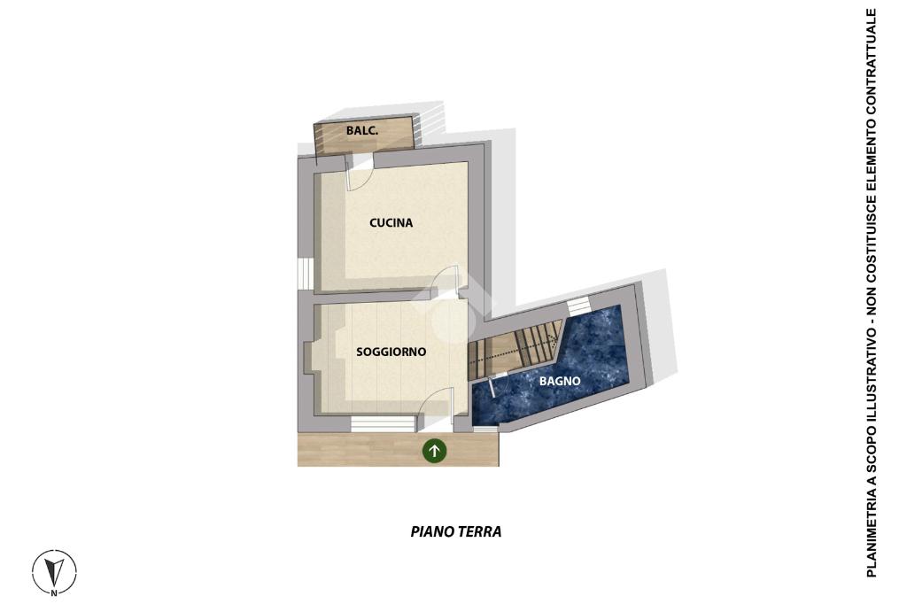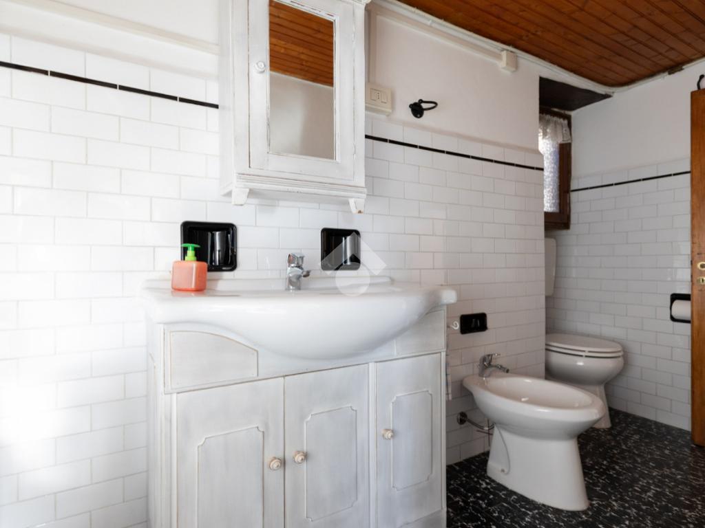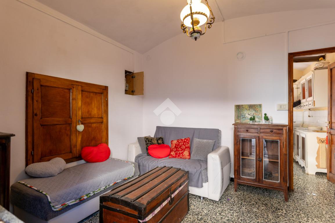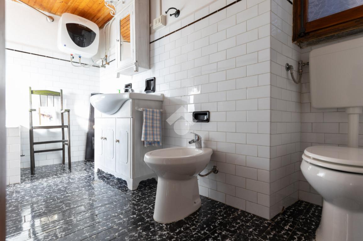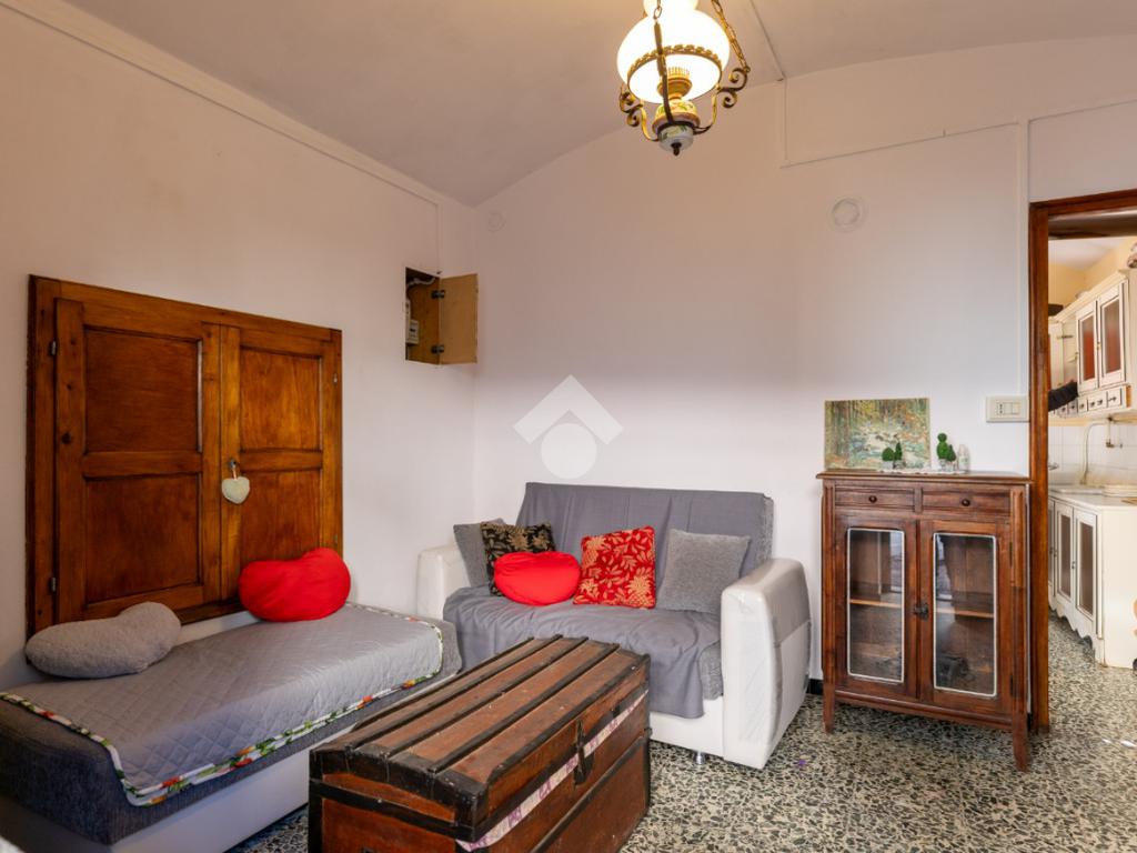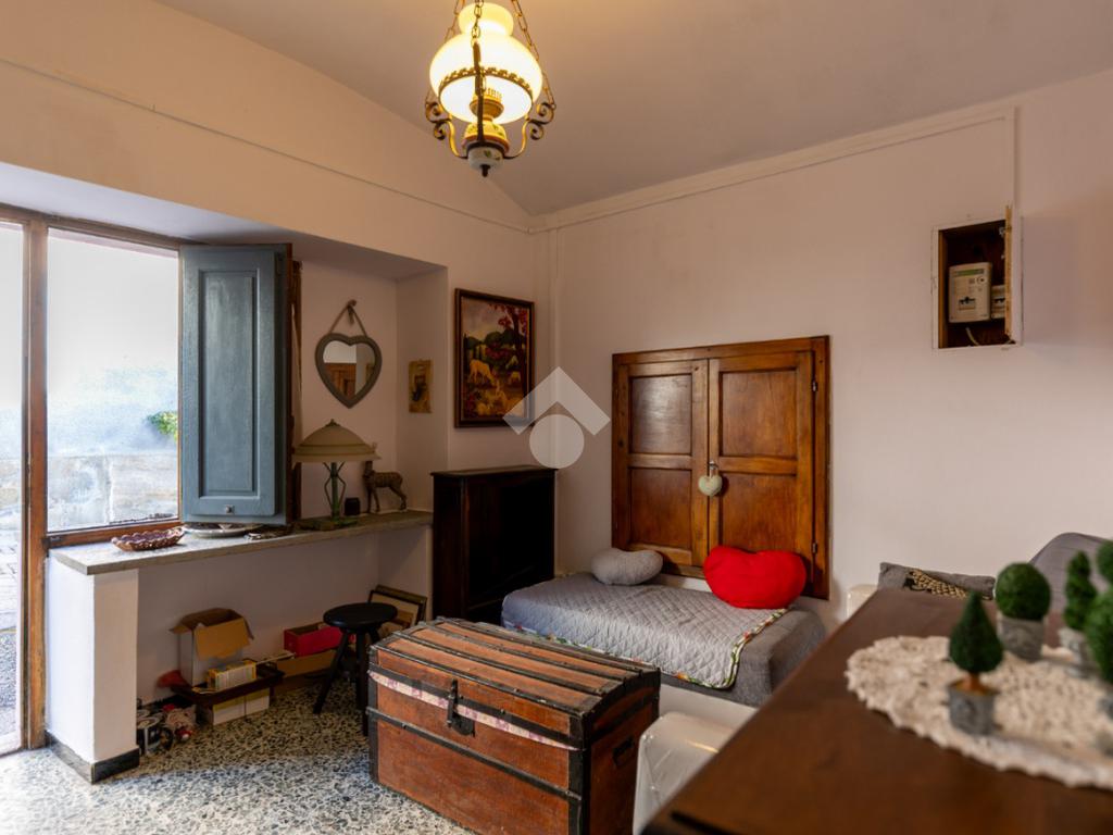 L’abitazione è disposta su tre livelli, di cui due abitativi, con ingresso principale a livello strada e privo di gradini, dettaglio pratico e raro nelle case di questo tipo. Al piano terreno si viene accolti da un grazioso salottino, intimo e conviviale, che introduce alla cucina, vero cuore della casa. Qui il tempo sembra rallentare: l’ambiente sprigiona un fascino chabby chic, fatto di arredi chiari, dettagli curati e luce naturale, con la stufa a legna a scandire le stagioni e l’affaccio sul balcone a regalare aria e luminosità. Il piano si completa con un bagno finestrato, semplice e funzionale.